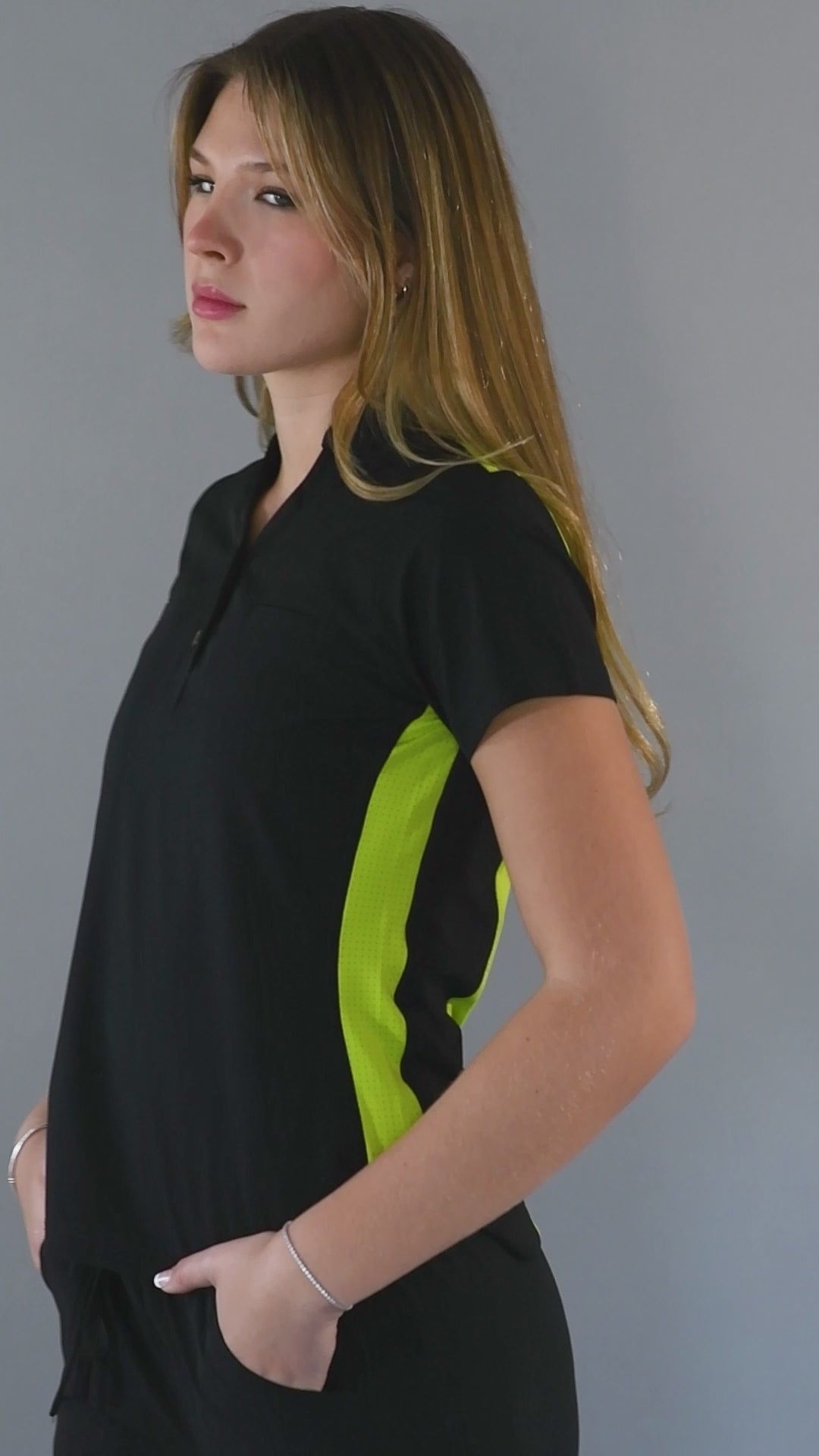 Este top médico está diseñado para ofrecer la máxima comodidad y funcionalidad durante largas jornadas de trabajo. Confeccionado con una combinación de tela ligera y vistas microperforadas, esta prenda garantiza una frescura y respirabilidad excepcionales. Además, su durabilidad y resistencia aseguran que mantendrá su forma y calidad incluso después de múltiples lavados. Ideal para profesionales de la salud que buscan un uniforme que combine estilo y rendimiento